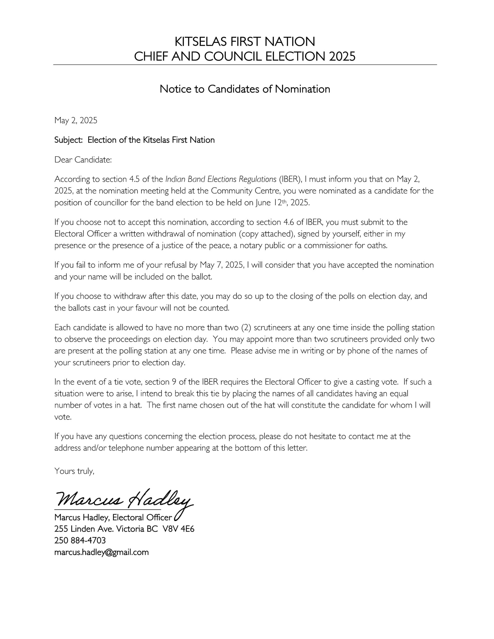 Notice to Candidates of Nomination